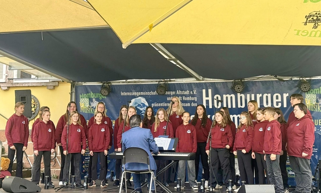 Unser Auftritt am 13. September beim Homburger Musiksommer war sehr erfolgreich. Wir haben nicht nur jede Menge Applaus und viele Komplimente bekommen, sondern sicherlich auch etliche neue Fans hinzugewonnen. Auf dem Historischen Marktplatz herrschte eine freundliche, entspannte Atmosphäre. Viele Chor-interessierte Besucher waren gekommen, um an diesem Tag sieben Ensembles und Chöre auf der Bühne des Saarländischen Rundfunks zu erleben, die alle beim SRkultur-Projekt „Hyper, Hossa, Halleluja“ teilgenommen hatten.